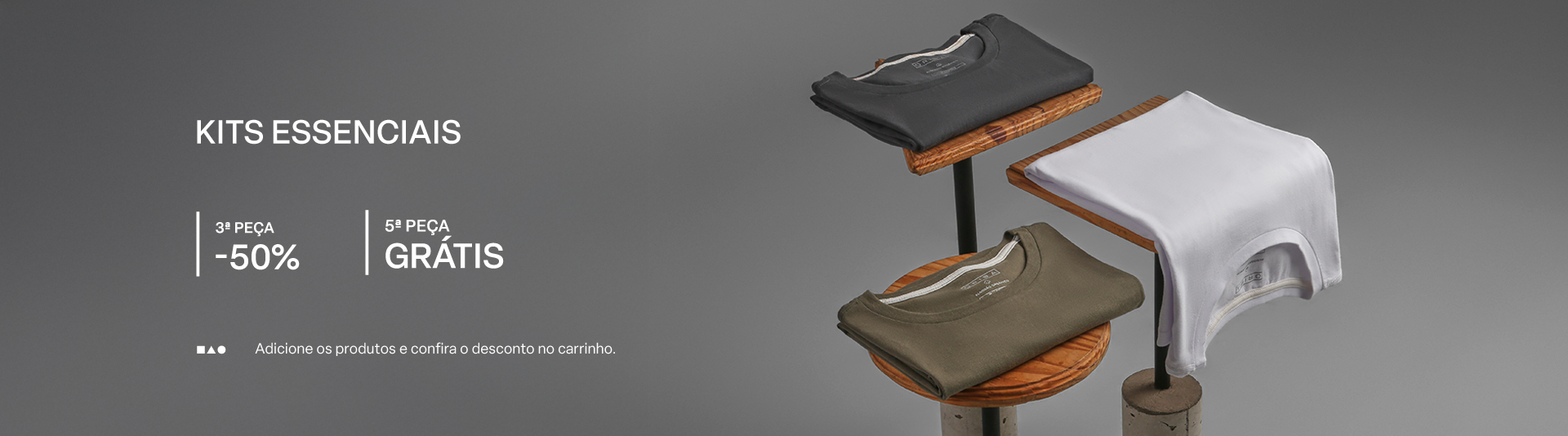 Compre 3 peças do mesmo modelo e ganhe 50% off. Compre 5 peças do mesmo modelo e a 5ª é grátis.